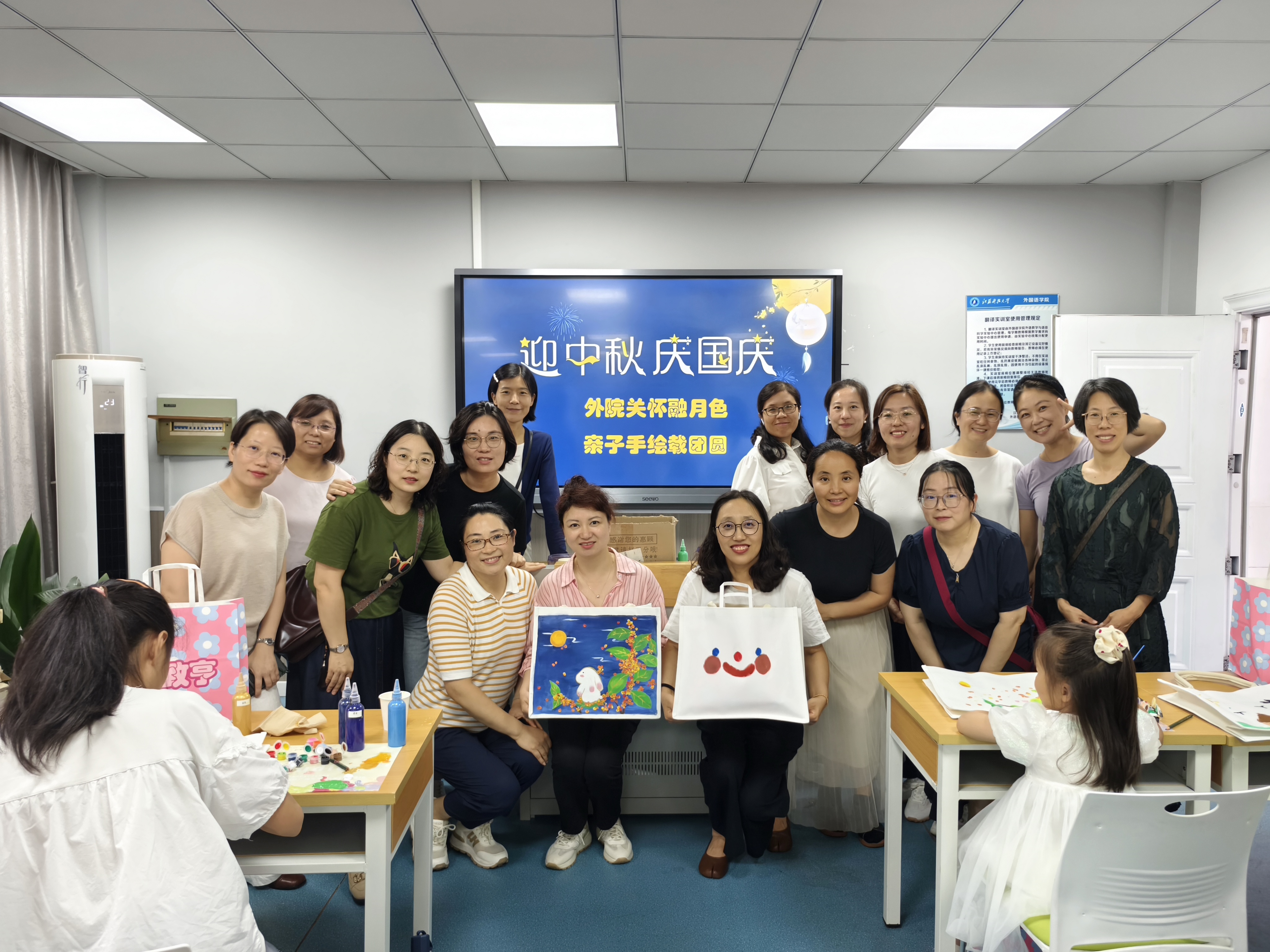 9月27日下午,外国语学院工会精心筹备的中秋、国庆双节庆祝活动——“外院关怀融月色,亲子手绘帆布载团圆”悄然拉开帷幕。