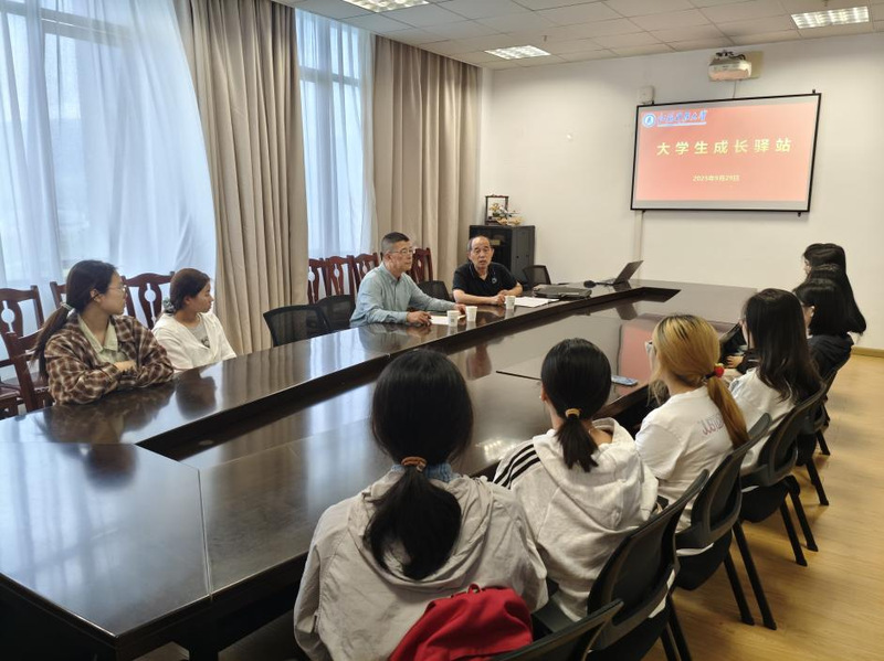 9月30日下午,校关工委大学生成长驿站走进外国语学院,活动在文理大楼1546会议室举行。学校关工委蒋春雷、方小勇两位老师与2024级英语、俄语专业同学们进行了深入的交流和讨论。外国语学院党委副书记赵莉参加交流。