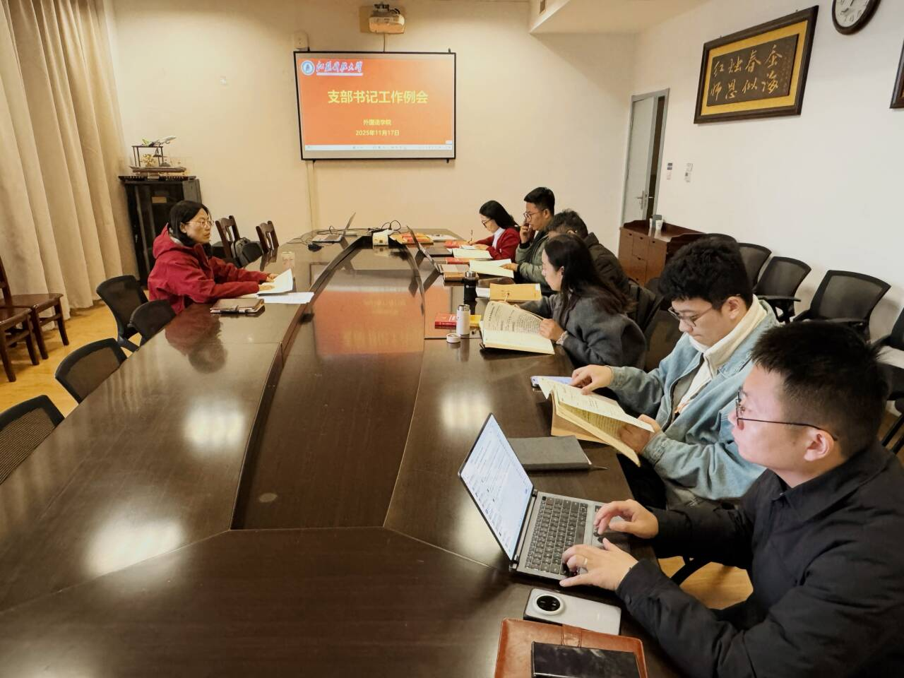 外国语学院于11月17日下午在文理大楼1546会议室召开党支部书记工作例会。会议由学院党委副书记赵莉主持,各党支部书记参加会议。