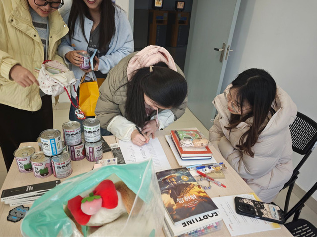 活动前期,外国语学院青年志愿者协会通过社交媒体发布募捐倡议,明确募捐物品和捐赠地点。同时为鼓励更多学子参与志愿行动,特别准备了DIY易拉罐盆栽作为爱心回馈。镇江市外国语学校八(4)班全体同学们也踊跃响应、积极参与,纷纷带着精心准备的物品前来奉献爱心。志愿者们耐心细致地对每一件捐赠物品进行登记,仔细检查书籍的完整性,将一份份爱心妥善收好。“能为草原的小朋友们尽一份力特别有意义,希望这些书籍能陪伴他们快乐成长。”参与捐赠的同学竺斯润说道。经过4小时的爱心接力,50余名参与者共计募集图书100余册;笔记本、签字笔、荧光笔等文具若干;更有书签、明信片、玩偶等饱含心意的小礼品。募集物资种类丰富、数量充足,确保100位草原学子都能收到专属礼物。
